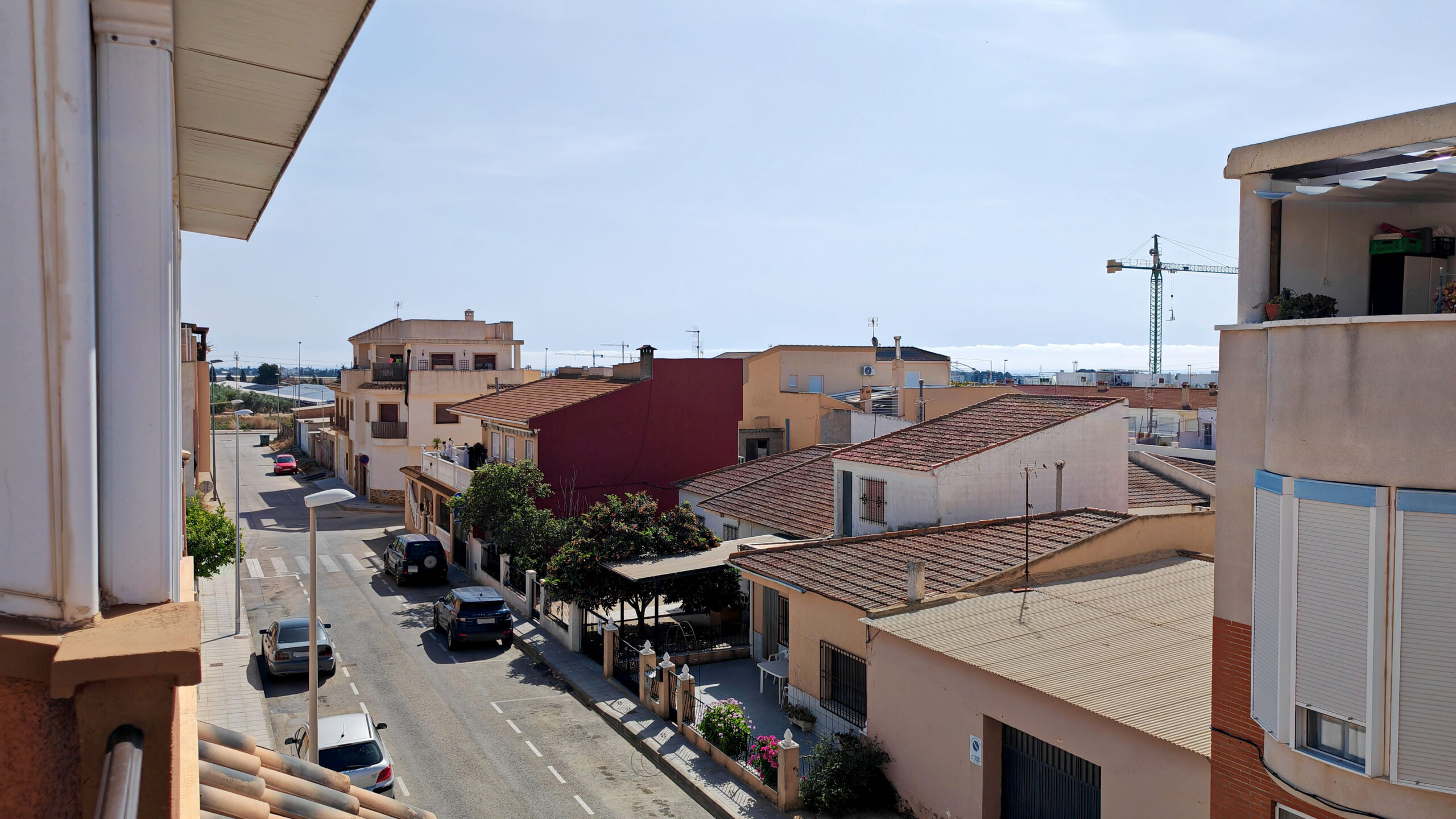 Desde el salón está el ventanal que da acceso a la terraza, donde estamos seguros que pasarás la mayoría del tiempo, porque las vistas desde esta terraza son muy bonitas: mar, pueblo, tranquilidad y sol. Además, está orientada al ESTE, inmejorable orientación.