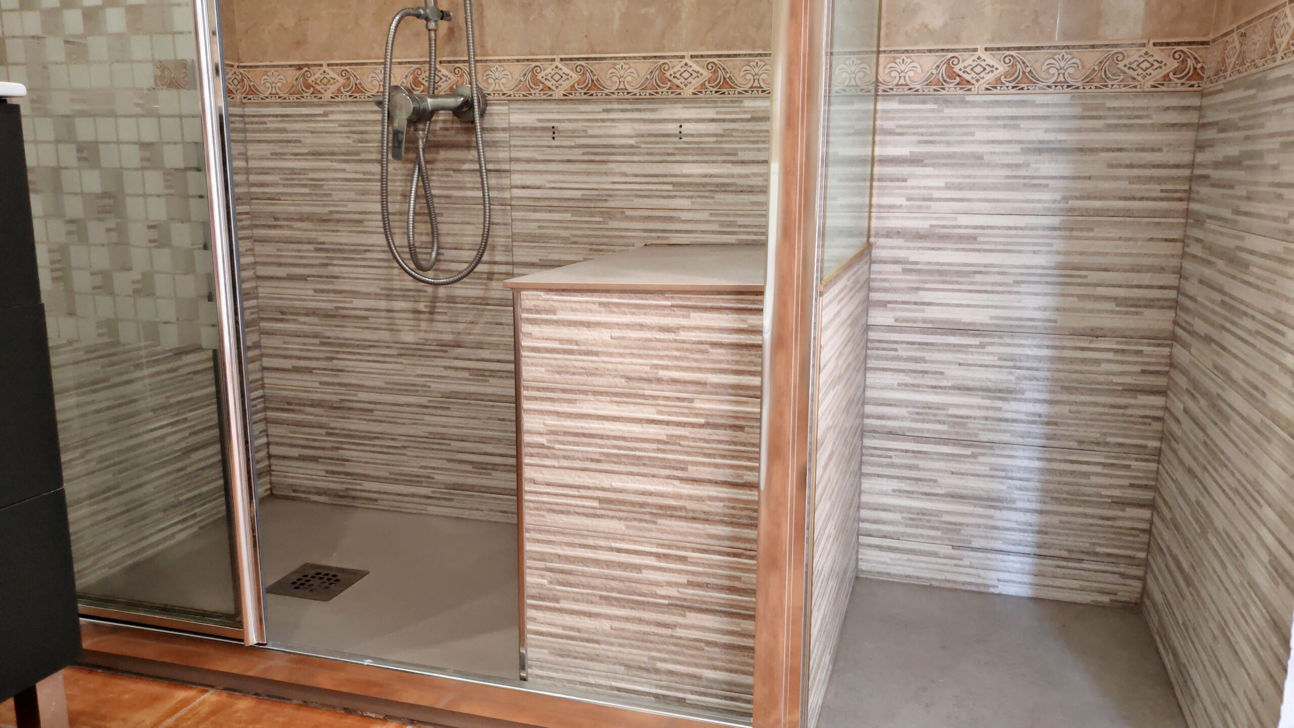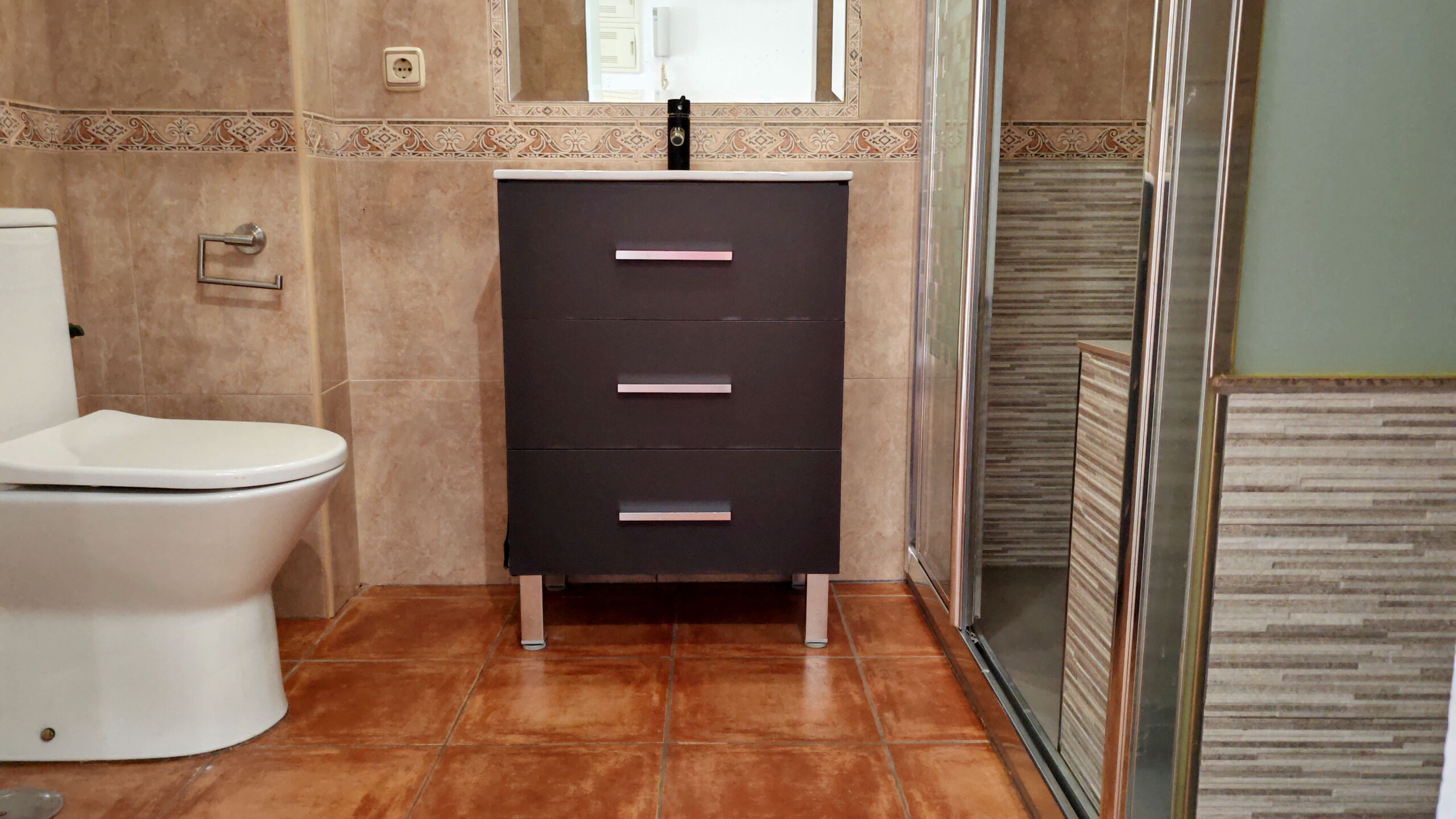 Sigamos por donde nos quedamos, desde la entrada hacia la derecha lo primero que nos encontramos es el baño, con una bonita puerta corredera de cristal, de muy buenas dimensiones y con una amplia ducha.