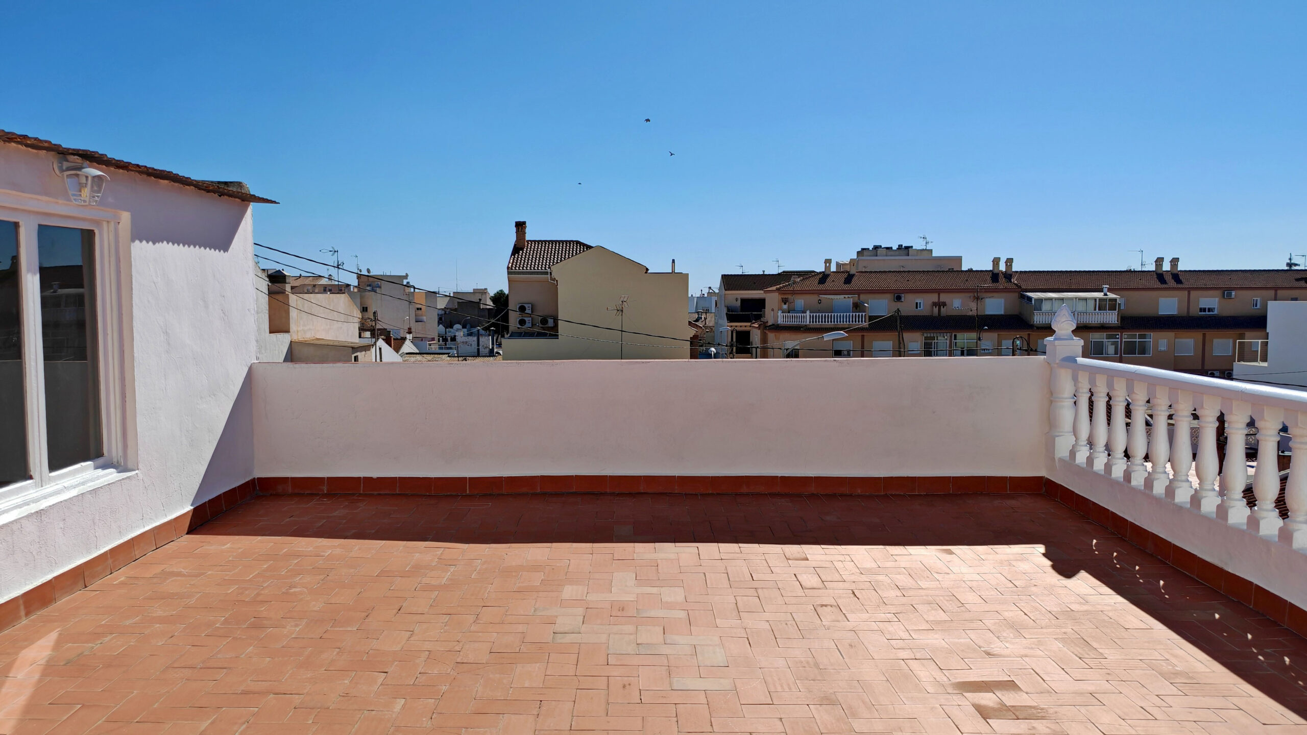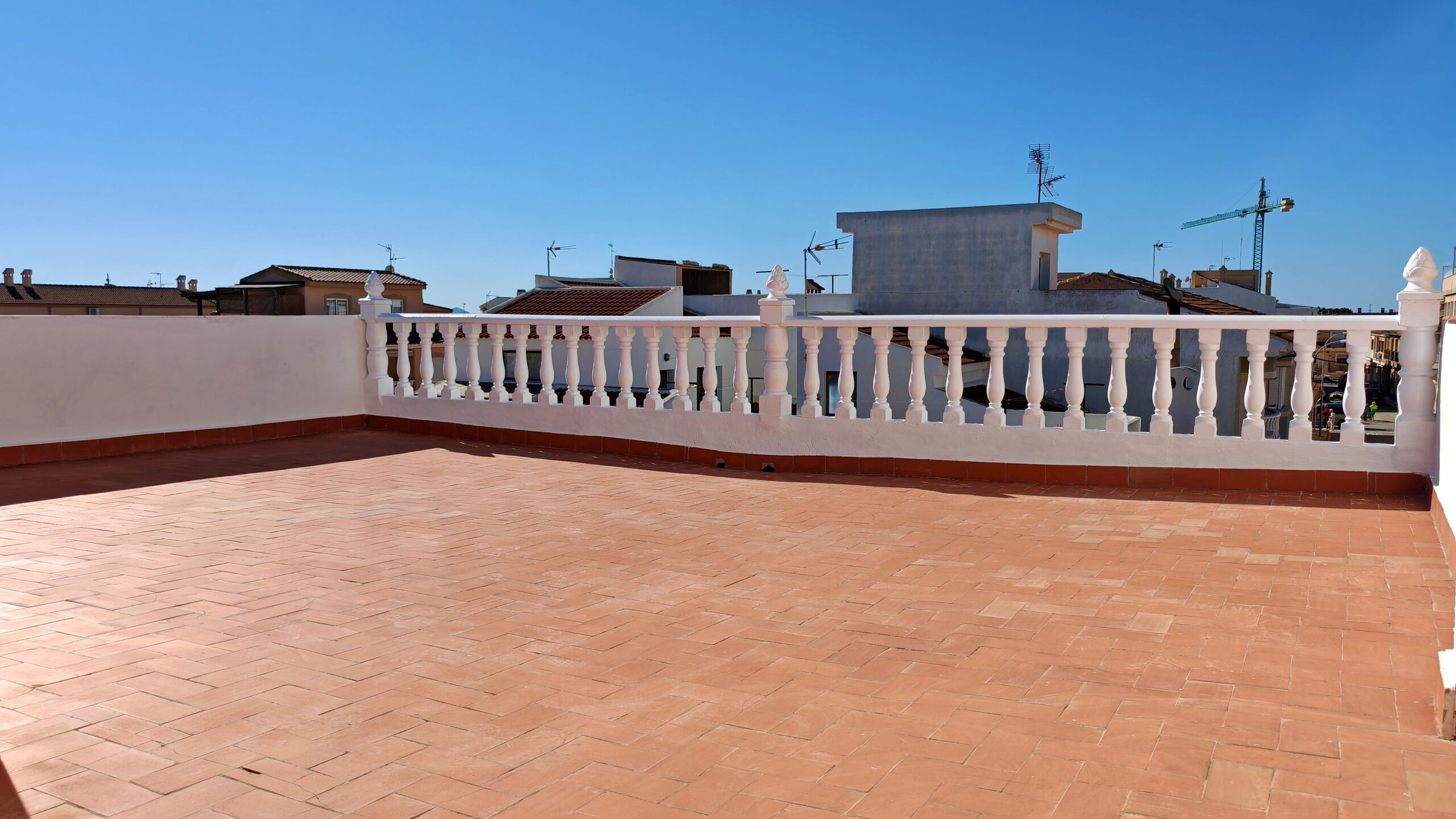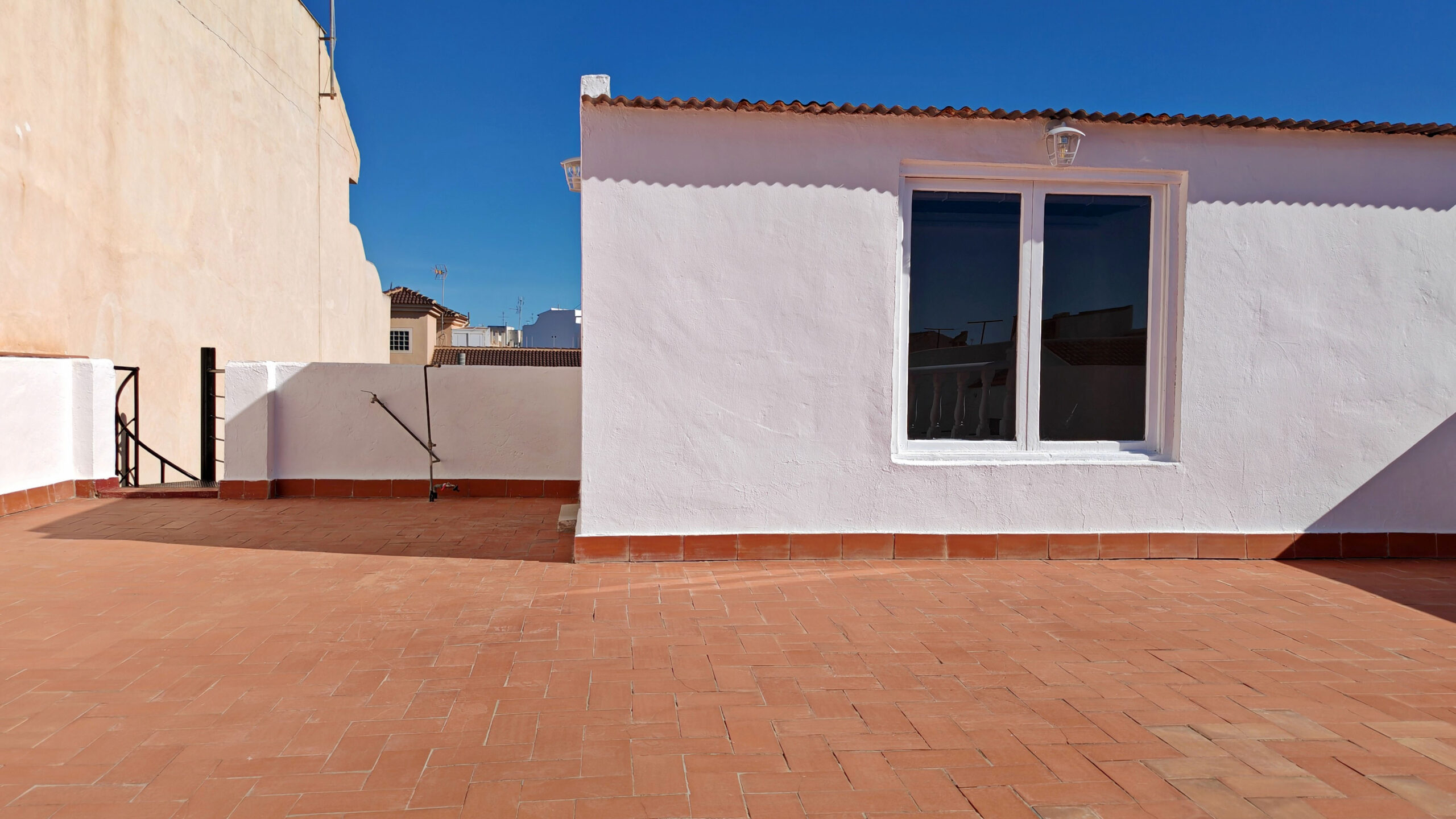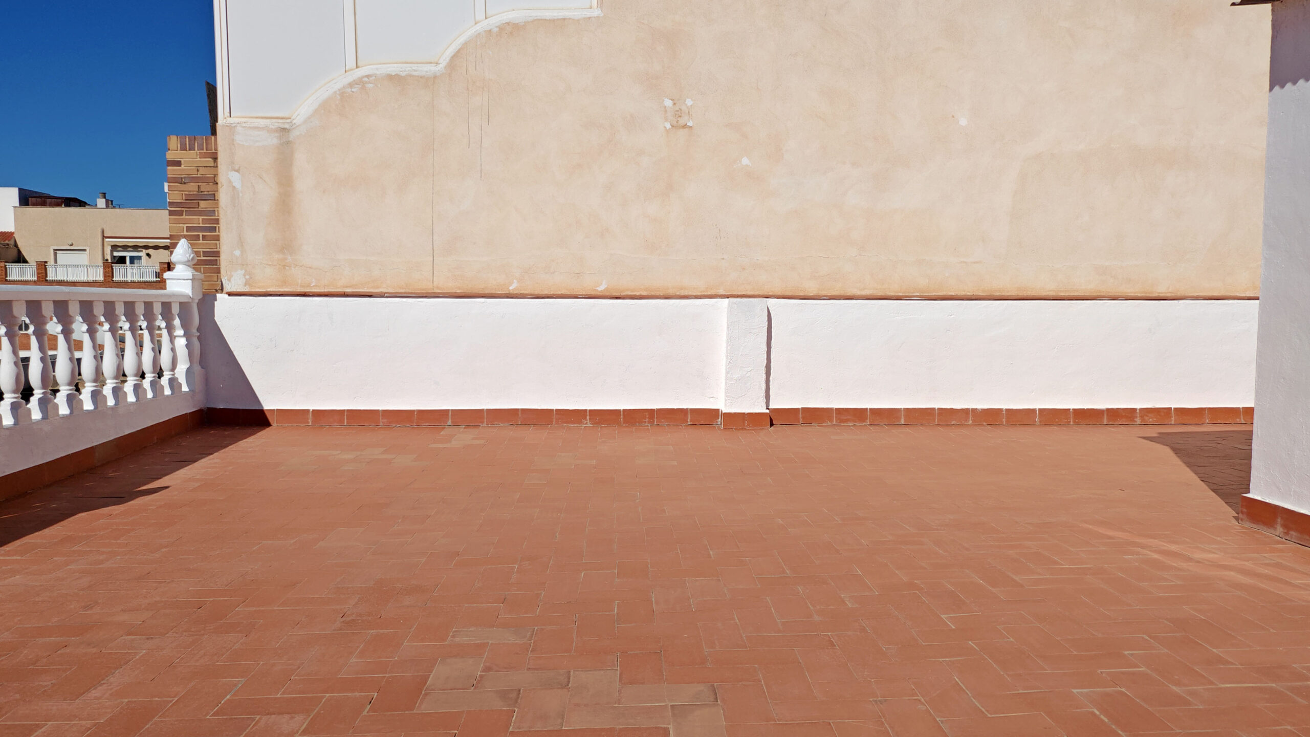 Y, ¿dónde lleva esa escalera? ¡A la TERRAZA! Un espectacular SOLARIUM de más de 70 m2, donde hay ubicada una habitación cerrada… ¡MADRE MÍA la de cosas que puedes hacer ahí!… con un poco de imaginación puedes hacer de esa terraza un lugar único.